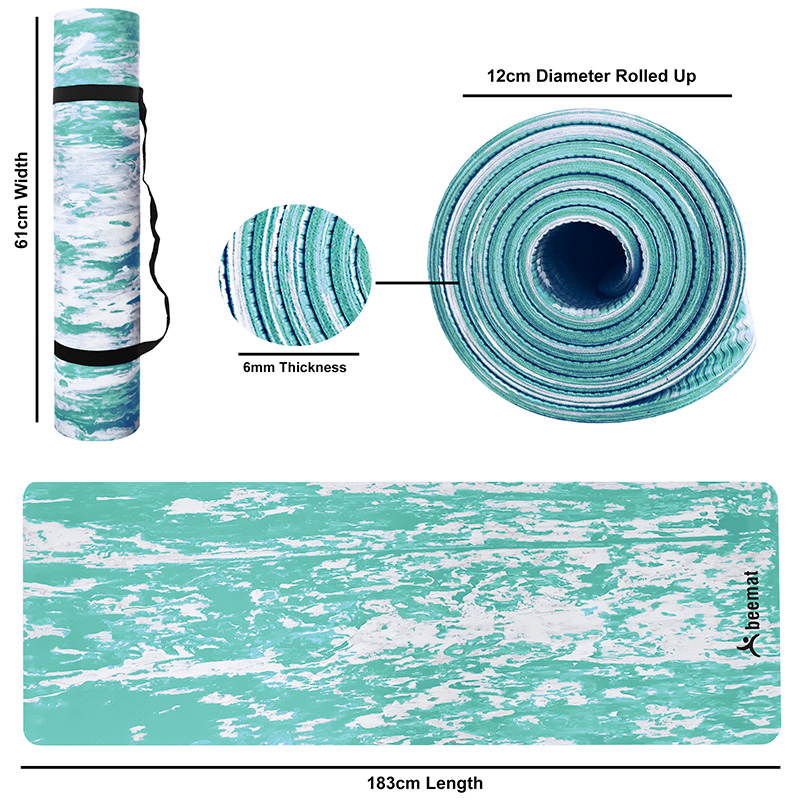 Adding comfort and convenience to your workout, the Beemat Marbleized Yoga Mat is an eco-friendly and recyclable mat that provides a comfortable surface.